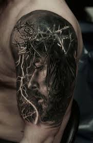 Jesus 3d Oberarm Tattoo Portrat Jesus Tattoo Coole Armtattoos Tattoos Arm Mann
