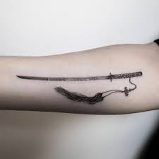 Katana Tattoo On The Right Forearm Neck Tattoo Tattoos For Guys Sword Tattoo