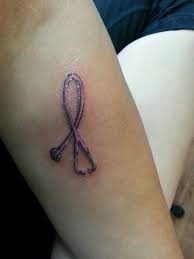 Pin By Rosalind Horne On Body Art Purple Ribbon Tattoos Cancer Ribbon Tattoos Ribbon Tattoos
