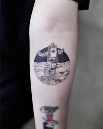 Tattoo Scenery Of An Astronaut Jumping On Moon S Surface By Tattooist Aki Wong Astronaut Tattoo Tattoos Moon Tattoo