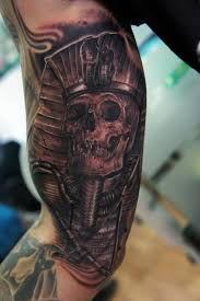 Half Skull King Tutankhamun Mens Arm Tattoo With 3d Design King Tut Tattoo Tattoo Designs Men Egypt Tattoo