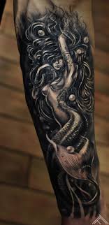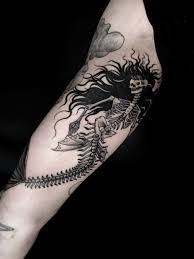 Blackwork Mermaid Tattoo Inked On The Right Forearm Hip Tattoos Women Mermaid Tattoo Sleeve Tattoos For Women