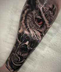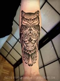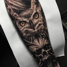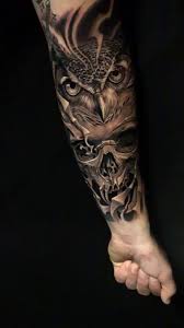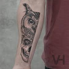 Super Cool Half Owl And Skull Tattoo On Forearm Owl Tattoo Cute Owl Tattoo Owl Forearm Tattoo