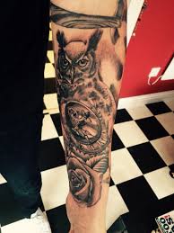 Best Owl Tattoo Clock Tattoos Tattoo Idea Work By Rods Jimenez Black And Grey Tattoo 3dtattoo Arm Sleeve Tattoo Realisti Clock Tattoo Owl Tattoo Sleeve Tattoos