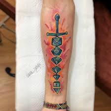 Geometric D D Dice And Water Colour By Lyndsay Mccarthy Thrive Studios In Cambridge On Can Evamigtattoos Tattoo Fantasy Tattoos Trendy Tattoos Nerd Tattoo