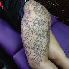 Disney Classic Princesses My Largest Piece By Joseph At Reverent Tattoo In Las Vegas Tattoo Disney Princesses Th Leg Tattoos Tattoos Disney Sleeve Tattoos