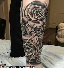 Rose And Cross Quarter Sleeve Tattoo Rose Tattoos For Men Sleeve Tattoos Half Sleeve Tattoos For Guys