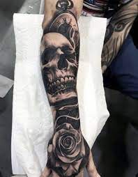 Image Result For Forearm Skull Tattoos Skull Rose Tattoos Rose Tattoos For Men Skull Sleeve Tattoos