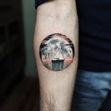 Sailboat Tattoo On The Right Inner Forearm Circle Tattoos Circular Tattoo Sailboat Tattoo