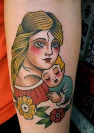 Mother And Child Tattoo Like The Retro Sailor Jerry Look Of The Mom And Baby Tattoos For Kids Traditional Tattoo Mom Tattoos For Daughters