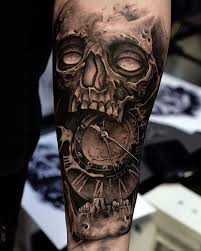 Tatouage Tete De Mort 40 Idees Memento Mori Tatouage En Styles Varies Skull Sleeve Tattoos Skull Tattoos Clock Tattoo