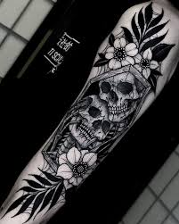 Cemetery Skull Tattoo Done By Klym Mainland At In Depth Tattoos Regina Sk Skull Sleeve Tattoos Evil Tattoos Skull Sleeve