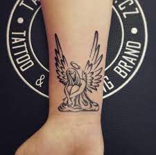 Guardian Angel Tattoo Wrist Via Angela Schmoyer Small Angel Tattoo Tattoos Wing Tattoos On Wrist