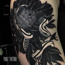 Elegant Black Work Tattoos By Yuuz Snake Tattoo Black Tattoos Tattoos