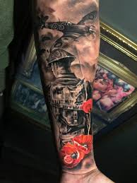 War Sleeve Memorial Soldier Remembrance Forearm Tattoo Silhouette Cross Trenches Tribute Tattoos Tattoos Forearm Tattoo