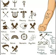 The Spqr Tattoos Godly Parent Symbols And Bar Lines For How Many Years Of Service You Have Been In Th Percy Jackson Tattoo Percy Jackson Percy Jackson Fandom