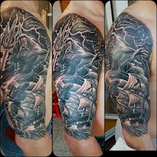 Greek God Ship Storm Storm Tattoo Left Arm Tattoos Sleeve Tattoos