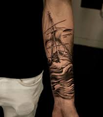 Poseidon Stormy Forearm Piece Segel Tattoo Schiff Tattoo Tattoos Manner
