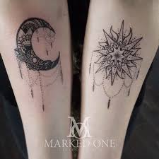Cool Half Moon And Sun Tattoo On Couple Forearm Tatoeage Ideeen Tatoeage Tatoeages