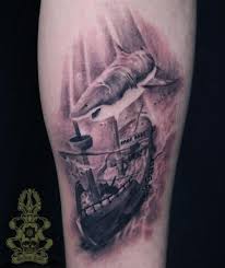 Black And Grey Shark Sunken Ship Tattoo Golden Iron Tattoo Studio Is Located On 363 Spadina Ave Toronto On M5t Sunken Ship Tattoo Ship Tattoo Time Tattoos