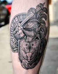 Grey Ink Helmet Sword And Shield Tattoos Tatuaje Espada Tatuaje Escudo Tatuajes