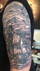 70 Ship Tattoo Ideas For Men A Sea Of Sailor Designs Ship Tattoo Tattoos Pirate Ship Tattoo