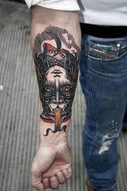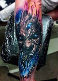 Colored Horror Style Creepy Looking Forearm Tattoo Of Colored Demon Horror Tattoo Horror Style Scary Tattoos