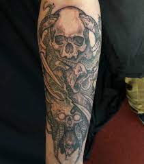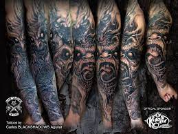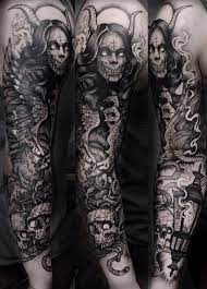 Grey Evil Sleeve Tattoo Evil Tattoos Skull Sleeve Tattoos Tattoo Sleeve Designs