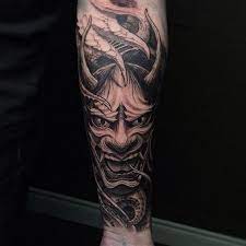 Black Blue Demon Tattoo On Forearm Demon Tattoo Forearm Tattoos Tattoos
