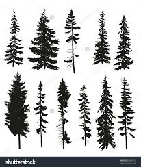 Conifers Sketch Set Hand Drawing Graphic Forest Isolated Vector Illustration Silhouette Elements Black Forest Tattoos Tree Tattoo Designs Dark Forest Tattoo