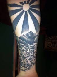 Wrist Male Sun Rays Tattoo With Ocean Waves Sun Tattoo Designs Sun Tattoo Rising Sun Tattoos