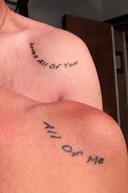 His And Hers Shoulder Tattoo Me And My Guy All Of Me Lyrics John Legend Tattoo For Boyfriend Him And Her Tattoos Relationship Tattoos