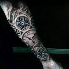 Rose Clock Tattoo Black And Grey Buscar Con Google Watch Tattoos Watch Tattoo Design Arm Tattoos For Guys