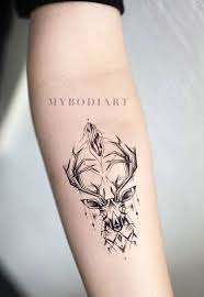 Tawn Small Geometric Black Deer Spirit Animal Temporary Tattoo Geometric Tattoo Tattoos Sleeve Tattoos