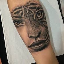 Womans Portrait Tiger Merged Best Tattoo Ideas Designs Face Tattoos For Women Tiger Face Tattoo Forearm Tattoo Girl