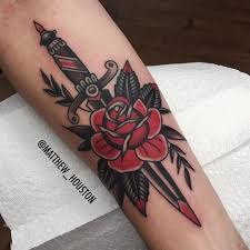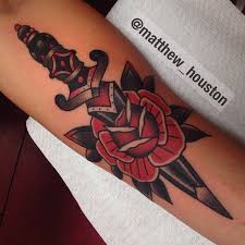 Traditional Rose Dagger Tattoo Rose And Dagger Tattoo Traditional Tattoo Tattoos