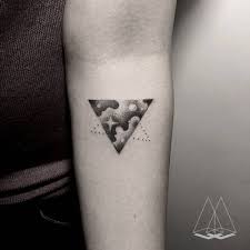 Dot Work Style Cloudy Triangle Tattoo On The Left Forearm By Artist Mentat Gamze Triangle Tattoo Foot Tattoos For Women Inspiring Quote Tattoos