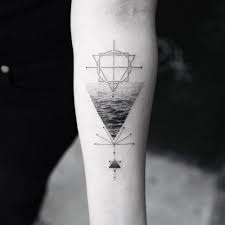Wave And Mountain In A Triangle Tattooed On The Right Forearm Triangle Tattoos Small Forearm Tattoos Waves Tattoo