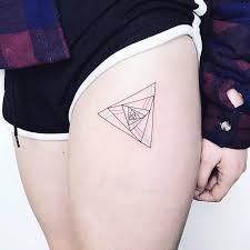 Seven Triangles In One Another Tattoo Inked On The Upper Part Of The Left Thigh Triangle Tattoo Triangle Tattoo Design Tattoos