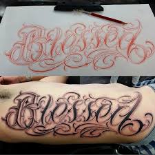 621 Likes 27 Comments Edmar Tattoos Edmar619 On Instagram Another Shot Of The Quot Blessed Quot I D Tattoo Font For Men Tattoo Fonts Tattoo Lettering