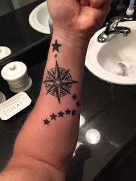 Alaska Flag Stars Tattoo With An Old Fashioned Compass Incorporated Tattoo Is On The Underside Of My Left Forearm Star Tattoos Alaska Tattoo Tattoos
