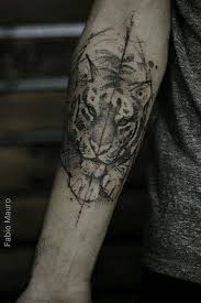 Sketch Work Style Tiger Tattoo On The Right Inner Tiger Tattoo Tattoos Tattoos For Guys