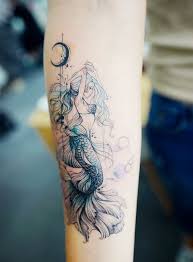 Beautiful Mermaid Tattoo On The Arm With A Crescent Moon Www Otziapp Com Siren Tattoo Mermaid Tattoos Mermaid Tattoo