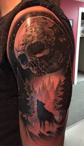 Skull Moon And Wolf Tattoo By Abby Lusk Skull Sleeve Tattoos Tattoos Tiger Tattoo Sleeve