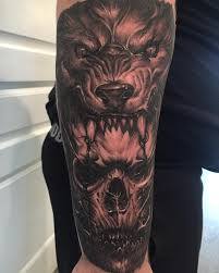 Wolf And Skull Forearm Tattoo By Lou Shaw For More Of Lous Work Follow His Facebook And Instagram Loushawtattoo Tha Body Art Tattoos Tattoos Picture Tattoos
