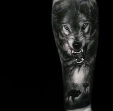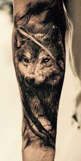 Super Realistic Dark Wolf With Silhouette Of A Wolf Forearm Tattoo Wolf Tattoos Men Lone Wolf Tattoo Tattoos For Guys Badass
