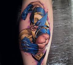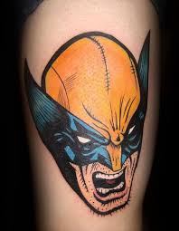 Colorful Cartoon Wolverine Head Tattoo Design For Thigh Wolverine Tattoo Comic Tattoo Comic Book Tattoo