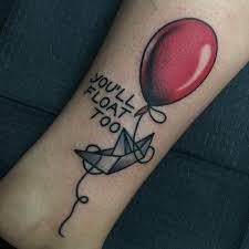 A Stephen King Horror Story Inspired Tattoo From The It Movie A Paper Boat And Colorful Balloons With The Words Pennywise Tattoo Movie Tattoos New Tattoos
